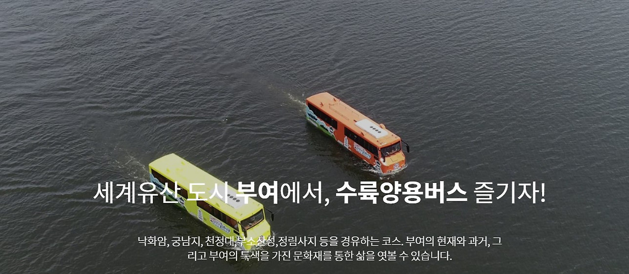수륙양용버스는 부여 시에서 운영되는 차별화된 관광 코스를 제공하는 국내 최초의 수륙양용버스입니다. 이 버스는 물과 땅에서 모두 운행할 수 있어 부여 시의 다양한 관광지를 쉽게 이동할 수 있습니다.