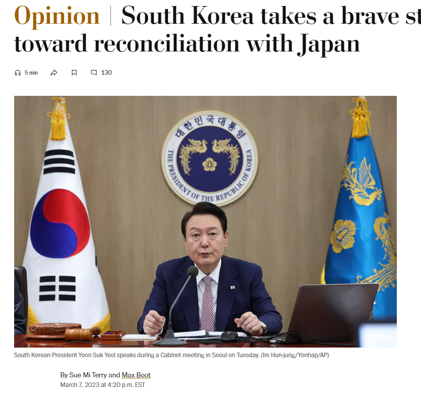 윤석열정부의 강제 징용 제삼자 변제안 칭송 기고문 청탁