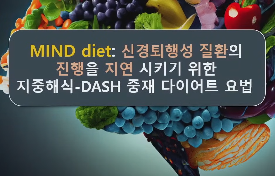 MIND diet는 "신경퇴행성 질환의 진행을 지연시키기 위한" 지중해식-DASH 중재 다이어트 요법을 말한다.