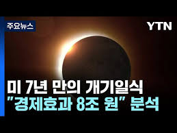 - CBS는 경제분석회사 페리 먼 그룹을 인용해 이번 개기일식이 약 60억 달러(8조 1000억 원)의 경제효과를 낼 것이라고 보도했습니다. 페리먼은 수십 년에 한 번 있는 일인 데다 팬데믹 이전 수준으로 여행 수요가 회복됐다는 점에서 관광업 등에 지출이 폭증할 것이라고 분석했습니다.
